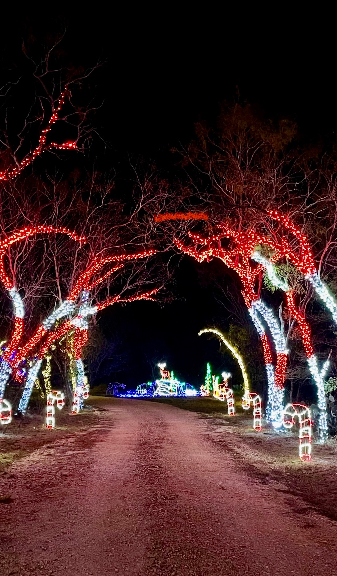Donovan Dove, the founder of Northern Lights, started his passion in 2015 for creating dazzling Christmas light shows by decorating his house in New Braunfels, TX as a hobby, and synchronizing it to music. As the display grew in popularity over the next 3 years, there was an obvious need for expansion, as the yard space got smaller and smaller with the addition of new props each year. Eventually, it grew to the point where he added his neighbor's house to the display in 2020; drawing hundreds of visitors each December. In 2022, Donovan and his wife, Crissy, decided to purchase land in Seguin to live out their dream of opening a Christmas Lights Drive Thru for hundreds of visitors to enjoy on a nightly basis. As a family-owned business, the couple worked tirelessly for the next 7 months to transform the 25-acre property into a Christmas wonderland. The display opened in 2022 and immediately received many positive reviews for its mix of "old school" static Christmas lights & props, and "new school" synchronized lights set to music. Visitors from San Antonio and beyond flock to enjoy the best Christmas Light Show in the area. Each year, the light display has expanded by adding new theme sections, and animated props and lights. This year, we open for Year 4 on November 28th, and hope you make the journey out to see the new props and sections we have added this season. Merry Christmas!